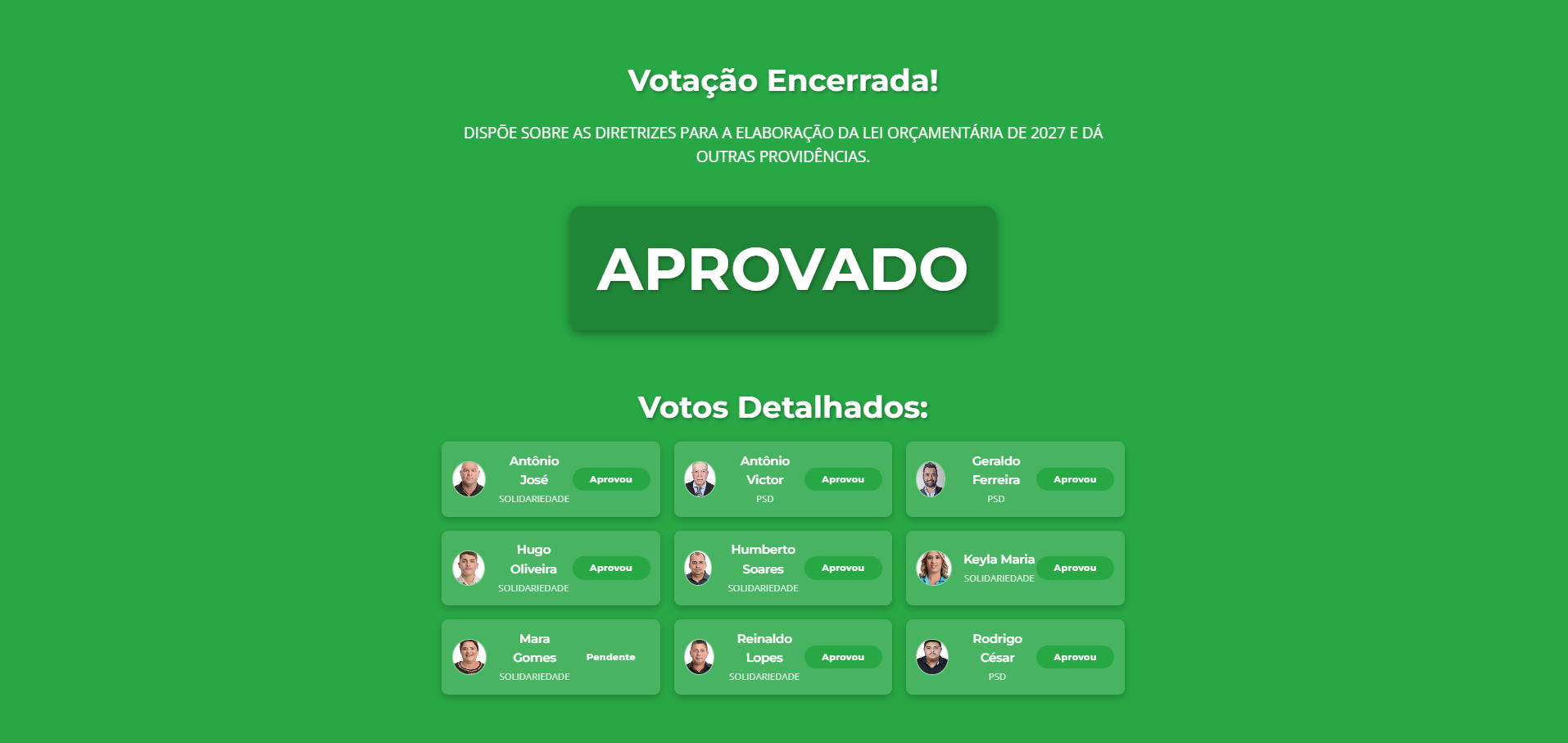 Resultado das Votações