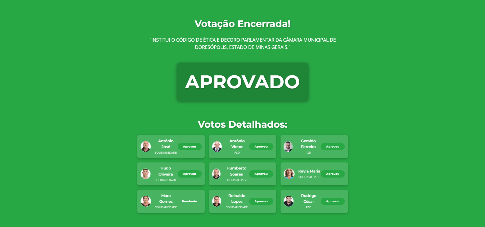 Resultado das Votações
